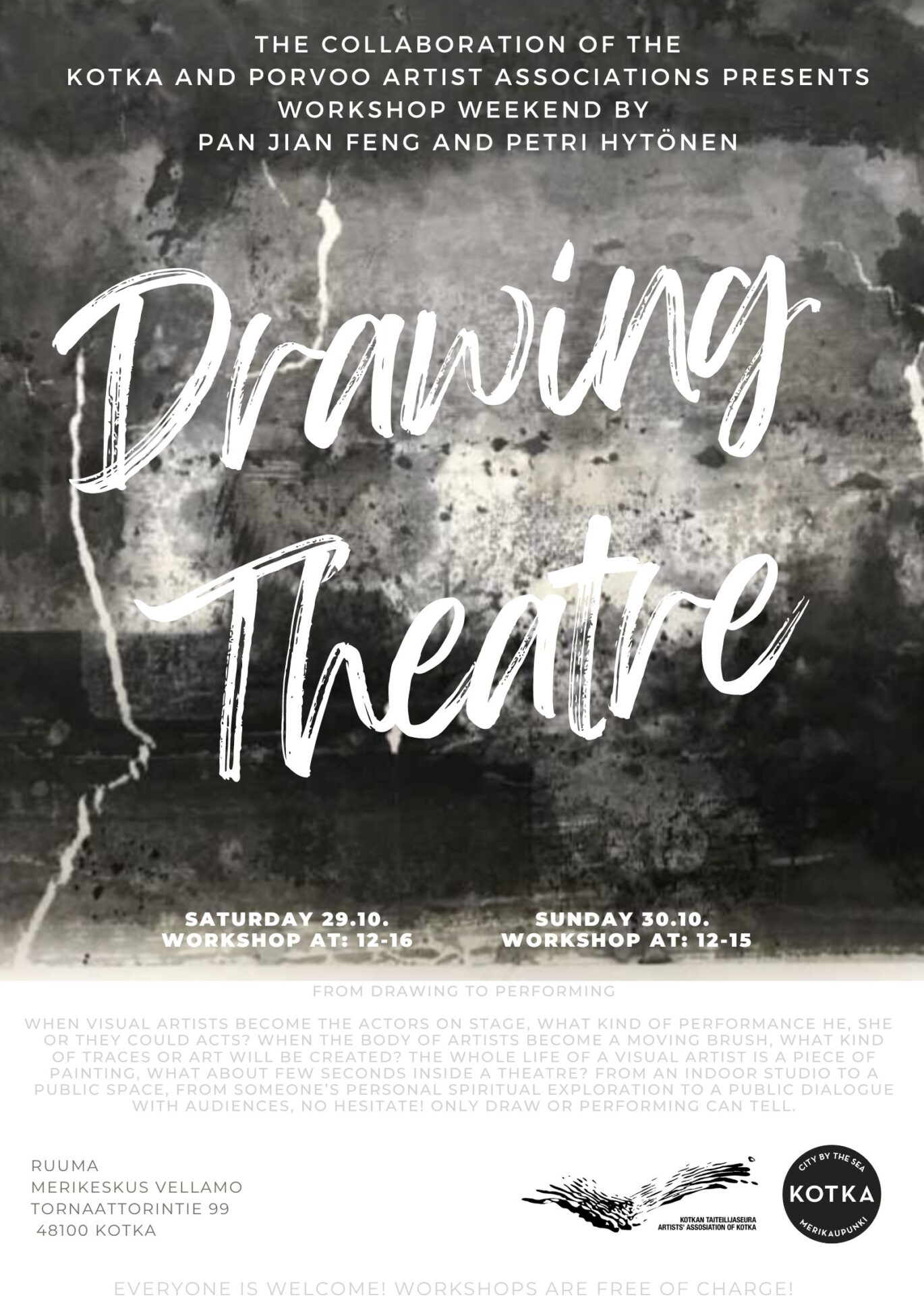 DRAWING THEATHE WORKSHOP WEEKEND BY PAN JIAN FENG AND PETRI HYTÖNEN IS PART OF A COLLABORATION OF KOTKA AND PORVOO ARTIST ASSOCIATIONS. THE WORKSHOPS ARE FREE OF CHARGE AND EVERYONE IS WELCOME TO JOIN THIS UNIQUE EXPERIENCE!